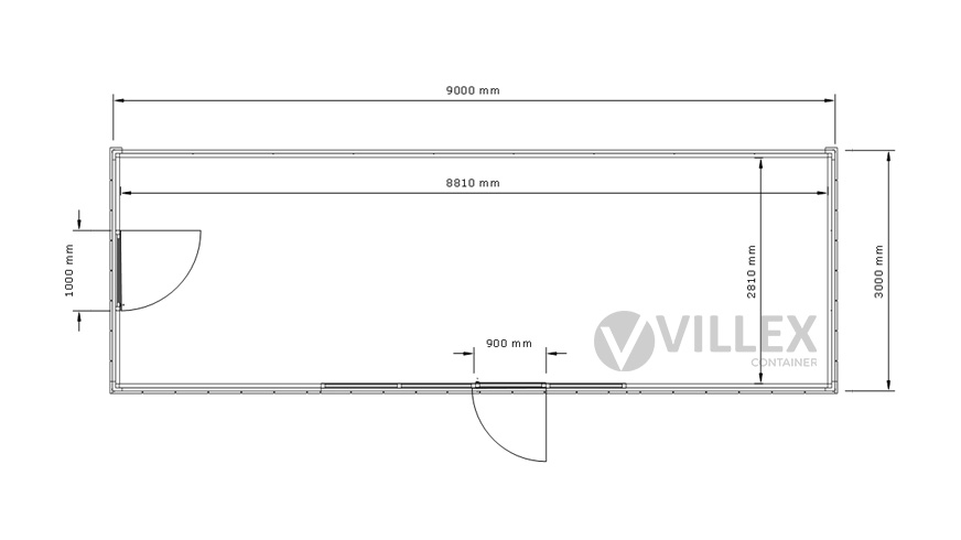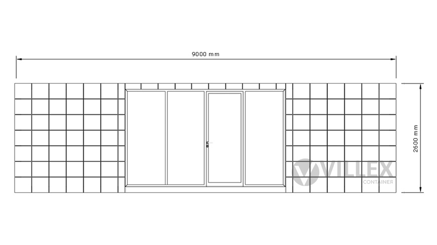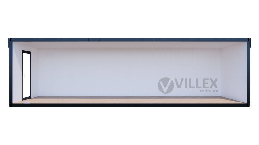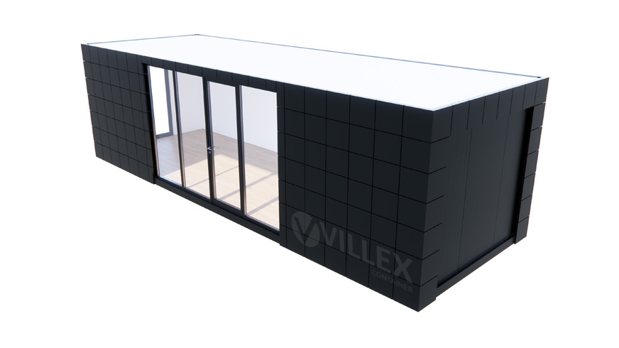 Der Villex Giant Block-Line Black 2.0 der Villex Container GmbH ist ein großzügiger Bürocontainer mit einer Länge von 9,0 m, einer Breite von 3,0 m und einer Höhe von 2,6 m. Die 5 cm starke Dämmung gewährleistet eine solide Isolierung, während Paneele und Grundrahmen in Anthrazit (RAL7016) für ein klares, modernes Erscheinungsbild sorgen. Die Ausstattung umfasst eine Glastür sowie drei zusätzliche Glaselemente, die zusammen mit einem bodentiefen Fenster (1000 x 2000 mm) für viel Tageslicht und ein helles, freundliches Raumgefühl sorgen. Für die technische Ausstattung stehen ein 32A CEE-Stecker, drei Doppelsteckdosen, zwei LED-Leuchten und ein Lichtschalter zur Verfügung, wodurch eine praxisgerechte Nutzung jederzeit gegeben ist. Mit einem Gewicht von 2000 kg ist der Villex Giant Block-Line Black 2.0 besonders stabil und robust. Er überzeugt durch klare Linien, modernes Design und hohe Funktionalität – die ideale Lösung für professionelle Büroanwendungen mit großzügigem Platzangebot.