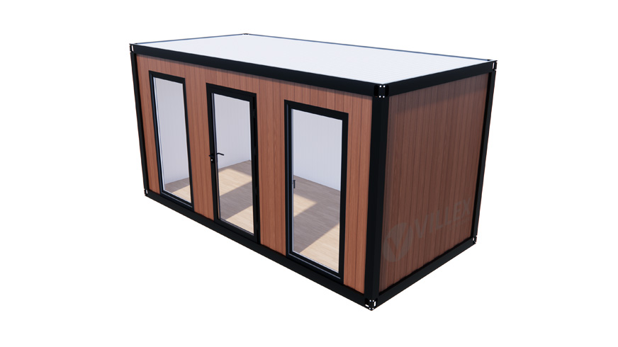 Der Villex Medium Wood Pavillon 2.0 vereint funktionalen Raum mit ansprechender Holzoptik – ideal für alle, die Wert auf eine moderne und zugleich einladende Gestaltung legen. Mit 5,00 m Länge, 2,40 m Breite und 2,60 m Höhe bietet er rund 12,0 m² Nutzfläche, perfekt geeignet als Büro-, Empfangs- oder Besprechungsraum. Besonders hervorzuheben sind die Paneele in ansprechender Wood-Optik, kombiniert mit einem anthrazitfarbenen Grundrahmen (RAL 7016). Diese Material- und Farbwahl verleiht dem Container eine hochwertige, warme Ausstrahlung, die sich sowohl in urbanem als auch natürlichem Umfeld harmonisch einfügt. Die zwei bodentiefen Fenster (je 1000 x 2000 mm) sorgen für großzügigen Tageslichteinfall und schaffen ein offenes, helles Raumgefühl. Eine moderne verglaste Eingangstür rundet das Erscheinungsbild ab und ermöglicht einen einladenden Zugang. Mit einer 5,0 cm starken Dämmung eignet sich der Container für saisonale Einsätze oder kurz- bis mittelfristige Nutzungen. Die vollständige elektrische Ausstattung umfasst einen 32 A CEE-Starkstromanschluss, drei Doppelsteckdosen, zwei LED-Leuchten und einen Lichtschalter – für einen sofortigen und reibungslosen Betrieb. Mit einem Gewicht von nur 900 kg ist der Pavillon besonders leicht und dadurch einfach zu transportieren und flexibel einsetzbar – ideal für Veranstaltungen, Märkte, Baustellen oder als temporäre Büroeinheit auf Firmengeländen.