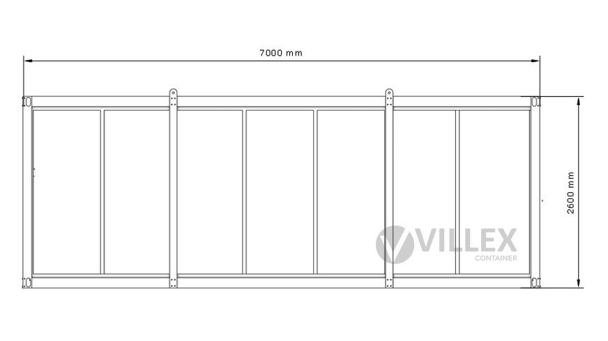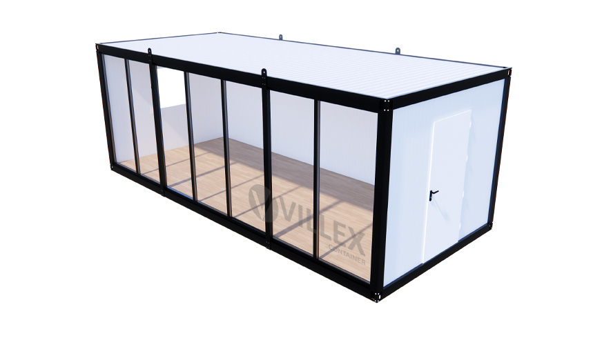 Der Villex Mega Glas Cube Blanc 1.0 der Villex Container GmbH ist ein repräsentativer Bürocontainer mit großzügiger Glasfront und modernem Design. Mit einer Länge von 7,0 m, einer Breite von 3,0 m und einer Höhe von 2,6 m bietet er ein offenes, lichtdurchflutetes Raumkonzept. Die 5 cm starke Dämmung gewährleistet eine zuverlässige Isolierung, während die grauweißen Paneele (RAL9002) in Kombination mit dem anthrazitfarbenen Grundrahmen (RAL7016) dem Container eine elegante und zugleich zeitlose Optik verleihen. Zur Ausstattung gehören sieben Glaselemente sowie eine stabile Stahltür, ergänzt durch ein Standardfenster (1000 × 1000 mm), die gemeinsam für ein helles und freundliches Raumambiente sorgen. Die elektrische Ausstattung umfasst einen 32A CEE-Stecker, drei Doppelsteckdosen, zwei LED-Leuchten sowie einen Lichtschalter – ideal für den sofortigen Einsatz als Büro- oder Präsentationsraum. Mit einem Gewicht von 2000 kg ist der Villex Mega Glas Cube Blanc 1.0 robust, stabil und vielseitig einsetzbar. Er kombiniert modernes Design mit hoher Funktionalität und eignet sich perfekt für repräsentative Büro- oder Ausstellungszwecke.