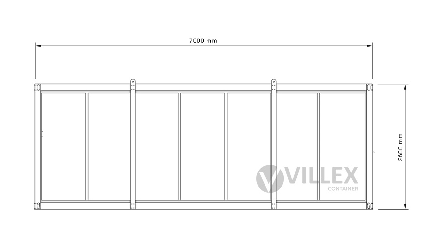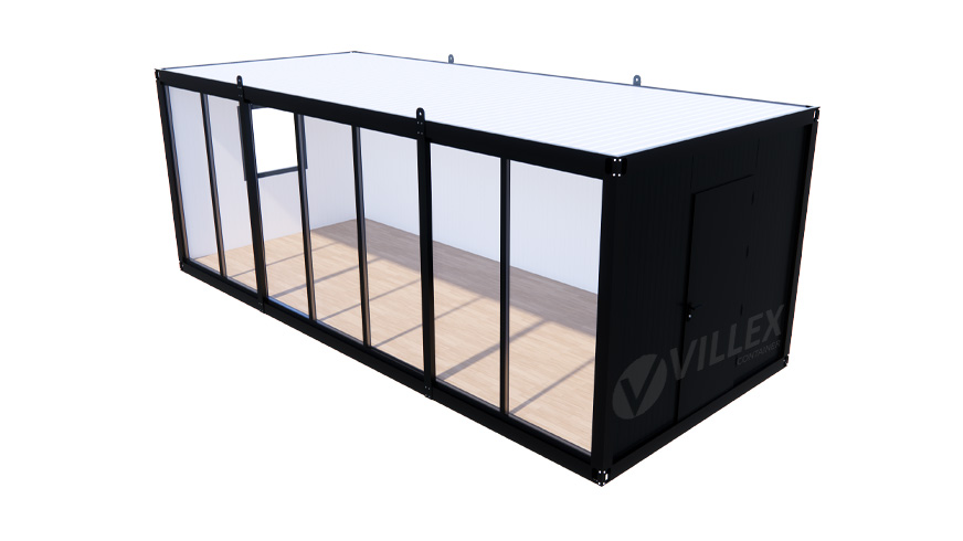 Der Villex Mega Glas Cube Nero MEGGCN1.0 ist ein kompakter und moderner Container mit einer Länge von 7 m, Breite von 3,0 m und Höhe von 2,6 m. Die anthrazitfarbene RAL 7016-Beschichtung verleiht dem Cube eine elegante, zeitlose Optik. Ausgestattet mit einer robusten Stahltür, sechs Glas-Elementen und einem Standardfenster (1000 x 1000 mm), bietet er eine lichtdurchflutete Umgebung und ein modernes Raumgefühl – ideal für vielseitige Anwendungen im Innen- und Außenbereich.