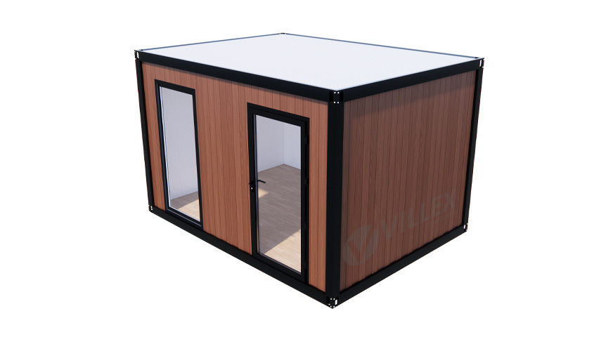 Der Villex Mini Wood Pavillon 3.0 vereint funktionalen Raum mit ansprechender Holzoptik – ideal für alle, die Wert auf eine moderne und zugleich einladende Gestaltung legen. Mit 4,00 m Länge, 3,00 m Breite und 2,60 m Höhe bietet er rund 12,0 m² Nutzfläche, perfekt geeignet als Büro-, Empfangs- oder Besprechungsraum. Besonders hervorzuheben sind die Paneele in ansprechender Wood-Optik, kombiniert mit einem anthrazitfarbenen Grundrahmen (RAL 7016). Diese Material- und Farbwahl verleiht dem Container eine hochwertige, warme Ausstrahlung, die sich sowohl in urbanem als auch natürlichem Umfeld harmonisch einfügt. Eine moderne verglaste Eingangstür rundet das Erscheinungsbild ab und ermöglicht einen einladenden Zugang. Mit einer 5,0 cm starken Dämmung eignet sich der Container für saisonale Einsätze oder kurz- bis mittelfristige Nutzungen. Die vollständige elektrische Ausstattung umfasst einen 32 A CEE-Starkstromanschluss, drei Doppelsteckdosen, zwei LED-Leuchten und einen Lichtschalter – für einen sofortigen und reibungslosen Betrieb. Mit einem Gewicht von nur 600 kg ist der Pavillon besonders leicht und dadurch einfach zu transportieren und flexibel einsetzbar – ideal für Veranstaltungen, Märkte, Baustellen oder als temporäre Büroeinheit auf Firmengeländen.