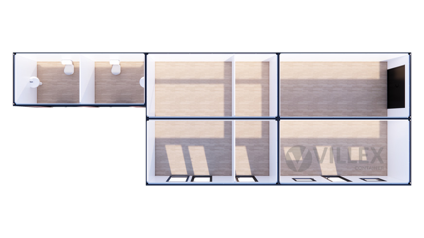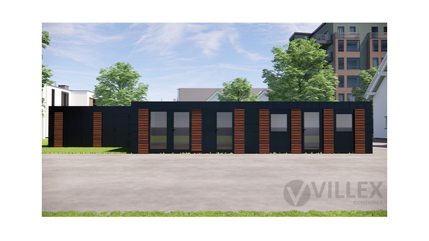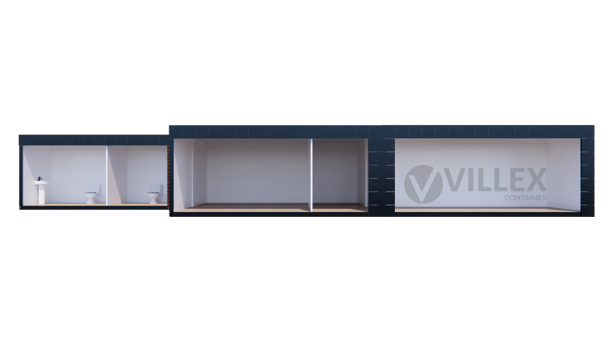 Die Mehrfachanlage der Firma Villex Container GmbH überzeugt durch ihre großzügige Raumaufteilung und vielseitige Nutzungsmöglichkeit. Auf einer Gesamtfläche von 18 m x 6 m vereint sie funktionale Bereiche mit durchdachter Ausstattung.
