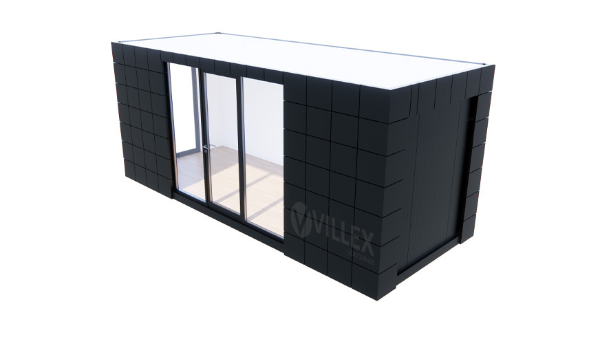 Der Villex Standard Block-Line Black 2.0 der Villex Container GmbH ist ein moderner Bürocontainer mit einer Länge von 6,0 m, einer Breite von 2,4 m und einer Höhe von 2,6 m. Die 5 cm starke Dämmung sorgt für eine zuverlässige Isolierung, während die anthrazitfarbenen Paneele (RAL7016) und der farblich abgestimmte Grundrahmen dem Container ein stilvolles und zeitloses Erscheinungsbild verleihen. Zur Ausstattung gehören eine Glastür sowie zwei zusätzliche Glaselemente, die in Kombination mit einem bodentiefen Fenster (1000 x 2000 mm) für viel Tageslicht und eine offene Raumwirkung sorgen. Die integrierte Elektrik umfasst einen 32A CEE-Stecker, drei Doppelsteckdosen, zwei LED-Leuchten sowie einen Lichtschalter – ideal für den praktischen Einsatz im Büroalltag. Mit einem Gewicht von 1000 kg bleibt der Villex Standard Block-Line Black 2.0 leicht transportierbar, vielseitig einsetzbar und überzeugt durch sein modernes Design in Kombination mit funktionaler Ausstattung.