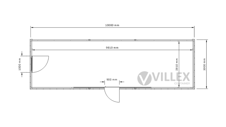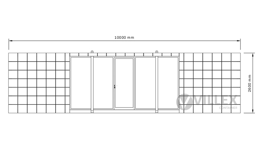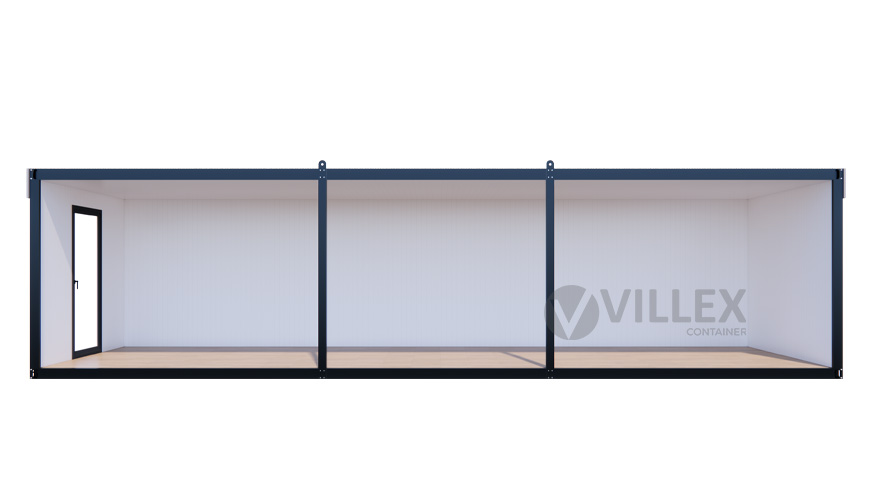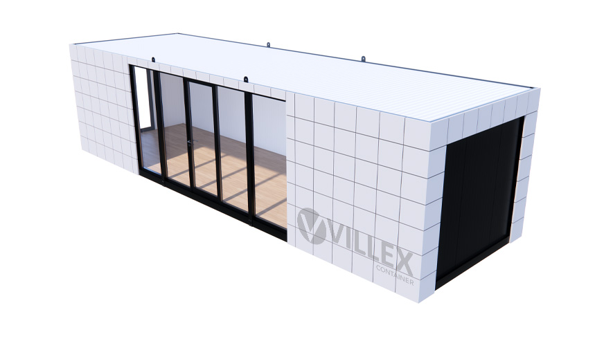 Der Villex Ultra Giant Block-Line Grey 2.0 der Villex Container GmbH ist ein repräsentativer Bürocontainer mit einer Länge von 10,0 m, einer Breite von 3,0 m und einer Höhe von 2,6 m. Die 5 cm starke Dämmung sorgt für eine zuverlässige Isolierung, während Paneele und Grundrahmen in Anthrazit (RAL7016) dem Container ein modernes, klar strukturiertes Erscheinungsbild verleihen. Die Ausstattung umfasst eine Glastür sowie vier zusätzliche Glaselemente, die gemeinsam mit einem bodentiefen Fenster (1000 x 2000 mm) für ein helles, großzügiges Raumgefühl sorgen. Zur technischen Ausstattung gehören ein 32A CEE-Stecker, drei Doppelsteckdosen, zwei LED-Leuchten sowie ein Lichtschalter – funktional und praxisgerecht für den Büroalltag. Mit einem Gewicht von 2200 kg ist der Villex Ultra Giant Block-Line Grey 2.0 besonders stabil und robust. Er kombiniert klare Linien mit moderner Funktionalität und bietet ein großzügiges Platzangebot für vielfältige Büroanwendungen.