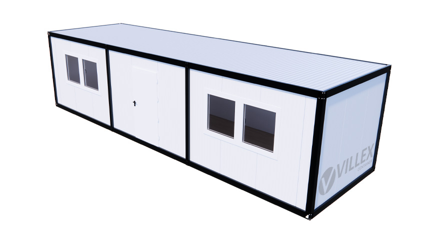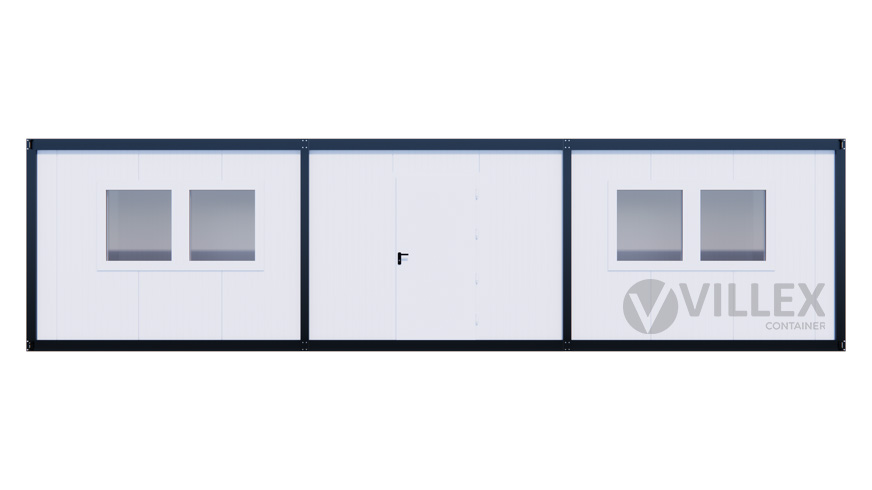 Der Villex Ultra Giant Cube Long Doppio Blanc 1.0 der Villex Container GmbH ist ein hochwertiger 10,0 Meter Container, der sich durch seine robuste Bauweise und vielseitige Nutzungsmöglichkeiten auszeichnet. Mit einer Länge von 10,0 m, einer Breite von 3,0 m und einer Höhe von 2,6 m bietet er reichlich Platz für verschiedene Anwendungen. Die 5 cm starke Dämmung sorgt für eine hervorragende Isolierung und ein angenehmes Raumklima. Die grauweißen Paneele (RAL9002) in Kombination mit dem anthrazitfarbenen Grundrahmen (RAL7016) verleihen dem Container eine moderne und elegante Optik. Er ist mit einer gedämmten Stahltür sowie zwei doppelt verglasten Doppelfenstern (2000 x 1000 mm) ausgestattet, die für viel Tageslicht und eine freundliche Atmosphäre sorgen. Zur Elektrik Ausstattung gehören ein 32A CEE-Stecker (Rot), drei Doppelsteckdosen, zwei LED-Leuchten und ein Lichtschalter. Mit einem Gewicht von 2.200 kg bietet der Villex Giant Cube Long Doppio Blanc 1.0 eine stabile und zugleich mobile Lösung für Büro-, Aufenthalts- oder Lagerräume mit ansprechender Ästhetik und hoher Funktionalität.
