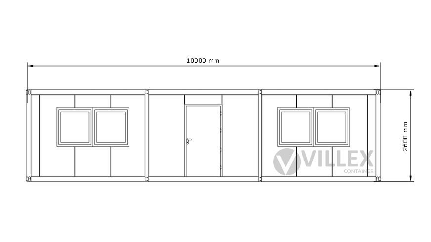 Der Villex Ultra Giant Cube Long Doppio Nero 1.0 der Villex Container GmbH ist ein moderner 10,0 Meter Container, der durch seine robuste Bauweise und vielseitigen Einsatzmöglichkeiten überzeugt. Mit einer Länge von 10,0 m, einer Breite von 3,0 m und einer Höhe von 2,6 m bietet er großzügigen Raum für unterschiedlichste Anwendungen. Die 5 cm starke Dämmung sorgt für eine effektive Isolierung und hält die Innenräume angenehm temperiert. Die anthrazitfarbenen Paneele (RAL7016) und der Grundrahmen verleihen dem Container ein modernes und stilvolles Design. Der Container ist mit einer gedämmten Stahltür sowie zwei doppelt verglasten Doppelfenstern (2000 x 1000 mm) ausgestattet, die für viel Tageslicht sorgen und eine angenehme Atmosphäre schaffen. Zur Elektrik Ausstattung gehören ein 32A CEE-Stecker (Rot), drei Doppelsteckdosen, zwei LED-Leuchten und ein Lichtschalter. Mit einem Gewicht von 2.200 kg> ist der Villex Ultra Giant Cube Long Doppio Nero 1.0> robust und vielseitig einsetzbar – ideal für Büro- oder Aufenthaltsräume mit hochwertiger Optik und funktionaler Ausstattung.