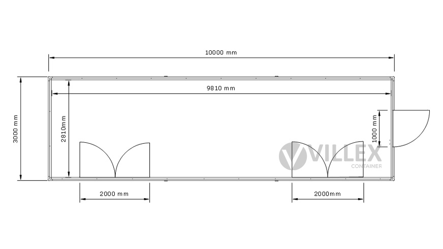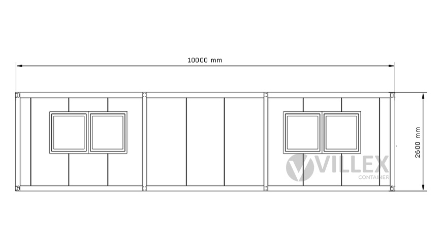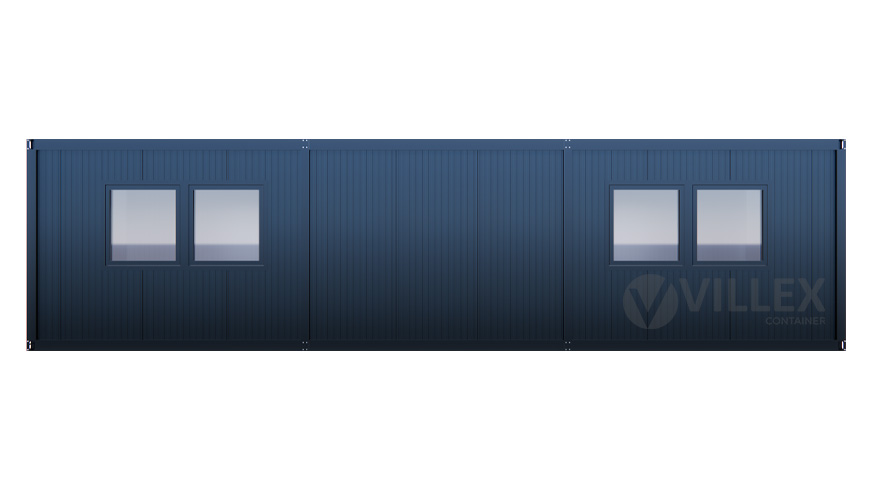Der Villex Ultra Giant Cube Short Doppio Fenster Nero 1.0 ist ein moderner Bürocontainer, der sich durch seine großzügige Raumgestaltung und hochwertige Ausstattung auszeichnet. Mit einer Länge von 10,0 Metern, einer Breite von 3,0 Metern und einer Höhe von 2,6 Metern bietet er ausreichend Platz für verschiedenste Nutzungszwecke. Die Paneele und der Grundrahmen sind in der stilvollen Farbe RAL7016 (Anthrazit) gehalten, was dem Container ein elegantes und professionelles Erscheinungsbild verleiht. Dank der 5,0 cm starken Dämmung bietet der Bürocontainer optimalen Schutz vor Witterungseinflüssen und sorgt für eine angenehme Innenraumtemperatur. Der Container verfügt über eine isolierte Stahltür, die mit Stahlwolle gedämmt ist, sowie zwei große Doppelfenster mit den Maßen 2000 x 1000 mm, die viel Tageslicht in den Raum lassen und eine helle, freundliche Atmosphäre schaffen. Die elektrische Ausstattung umfasst einen 32A CEE-Stecker in Rot, drei Doppelsteckdosen, zwei LED-Leuchten und einen Lichtschalter. Diese Features machen den Container zu einer vielseitigen Lösung für Arbeitsbereiche, Besprechungsräume oder andere funktionale Einsatzmöglichkeiten. Mit einem Gewicht von 1900 Kilogramm ist der Container stabil und für den langfristigen Gebrauch ausgelegt.