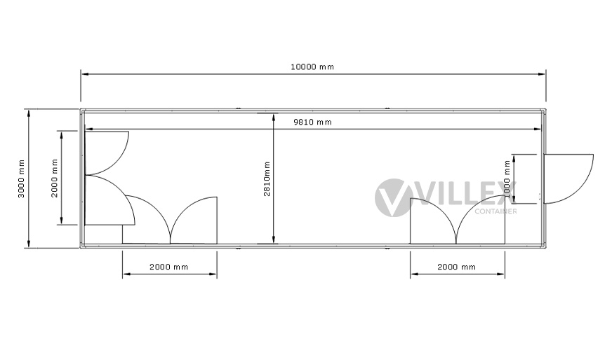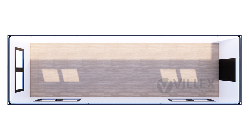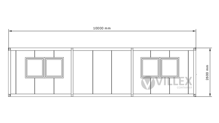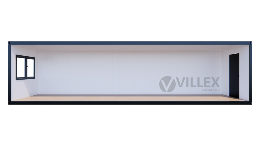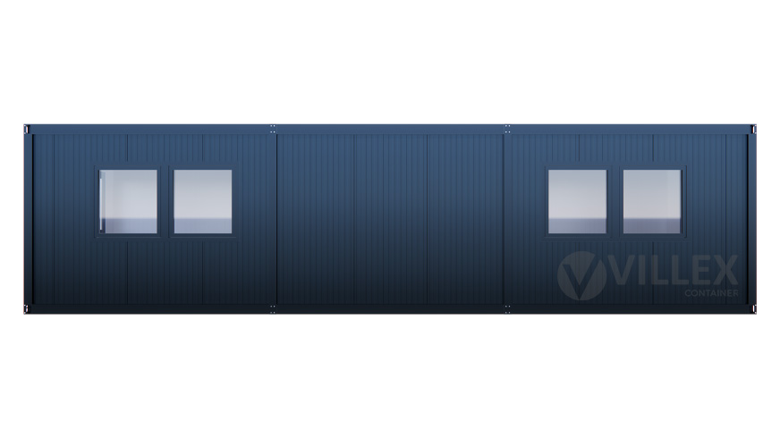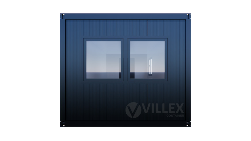 Der Villex Ultra Giant Cube Short Doppio Fenster Nero 2.0 ist ein hochwertiger Bürocontainer, der sich durch seine großzügige Fensterfront und seine durchdachte Ausstattung auszeichnet. Mit einer Länge von 10,0 Metern, einer Breite von 3,0 Metern und einer Höhe von 2,6 Metern bietet er ein großzügiges Raumangebot, ideal für verschiedene Arbeits- und Nutzungsanforderungen. Die elegante Farbgestaltung in RAL7016 (Anthrazit) sowohl für die Paneele als auch für den Grundrahmen verleiht dem Container ein modernes und professionelles Erscheinungsbild. Die 5,0 cm starke Dämmung sorgt für eine ausgezeichnete Isolierung, die sowohl thermischen als auch akustischen Komfort gewährleistet. Der Zugang erfolgt durch eine hochwertige Stahltür, die mit Stahlwolle gedämmt ist und sowohl Sicherheit als auch Energieeffizienz bietet. Drei große Doppelfenster mit den Maßen 2000 x 1000 mm ermöglichen einen hervorragenden Lichteinfall und schaffen eine helle, einladende Atmosphäre im Inneren. Die elektrische Ausstattung umfasst einen 32A CEE-Stecker in Rot, drei Doppelsteckdosen, zwei LED-Leuchten und einen Lichtschalter, die den Container zu einem voll funktionsfähigen und einsatzbereiten Raum machen. Mit einem Gewicht von 1900 Kilogramm ist der Container stabil und langlebig, was ihn zu einer idealen Lösung für dauerhafte oder temporäre Einsatzzwecke macht.