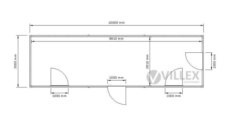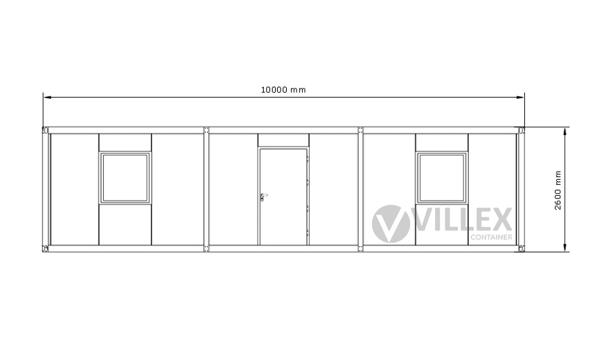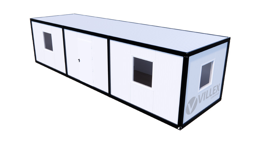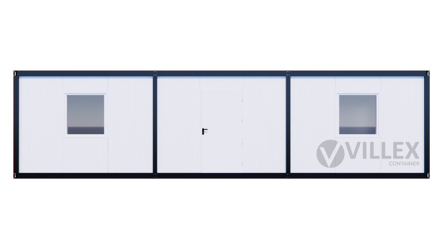 Der Villex Ultra Giant Plus Cube Blanc 4.0 der Villex Container GmbH ist ein moderner 10,0 Meter Bürocontainer. Mit einer Länge von 10,0 m, einer Breite von 3,0 m und einer Höhe von 2,6 m bietet er großzügigen Raum für vielseitige Nutzungsmöglichkeiten. Die 5 cm starke Dämmung gewährleistet eine effiziente Isolierung und sorgt für ein angenehmes Raumklima. Die grauweißen Paneele (RAL9002) in Kombination mit dem anthrazitfarbenen Grundrahmen (RAL7016) verleihen dem Container ein modernes und professionelles Erscheinungsbild. Ausgestattet mit einer stabilen Stahltür (gedämmt mit Steinwolle) sowie drei Standard-Fenstern (1000 x 1000 mm, doppelt verglast) sorgt der Container für optimale Lichtverhältnisse. Die integrierte Elektrik Ausstattung umfasst einen 32A CEE-Stecker (rot), drei Doppelsteckdosen, zwei LED-Leuchten und einen Lichtschalter, um eine funktionale Arbeitsumgebung sicherzustellen. Mit einem Gewicht von 2200 kg ist der Container stabil und dennoch transportabel.