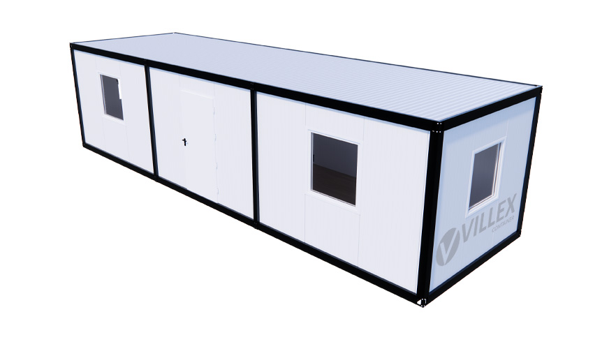 Der Villex Ultra Giant Plus Cube Blanc 5.0 der Villex Container GmbH ist ein vielseitiger 10,0 Meter Bürocontainer, der durch seine hochwertige Verarbeitung und moderne Optik überzeugt. Mit einer Länge von 10,0 m, einer Breite von 3,0 m und einer Höhe von 2,6 m bietet er großzügigen Raum für verschiedene Anwendungen. Die 5 cm starke Dämmung gewährleistet eine zuverlässige Isolierung und angenehme Temperaturen im Innenraum. Die grauweißen Paneele (RAL9002) in Kombination mit dem anthrazitfarbenen Grundrahmen (RAL7016) verleihen dem Container eine stilvolle und professionelle Optik. Ausgestattet mit einer gedämmten Stahltür (Steinwolle Isolierung) sowie vier Standard-Fenstern (1000 x 1000 mm, doppelt verglast) sorgt der Container für eine helle und angenehme Arbeitsatmosphäre. Zur Elektrik Ausstattung gehören ein 32A CEE-Stecker (rot), drei Doppelsteckdosen, zwei LED-Leuchten und ein Lichtschalter, die eine optimale Stromversorgung gewährleisten. Mit einem Gewicht von 2200 kg bleibt der Container stabil und flexibel einsetzbar.