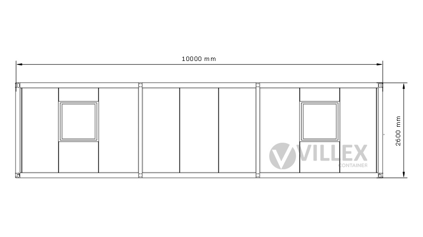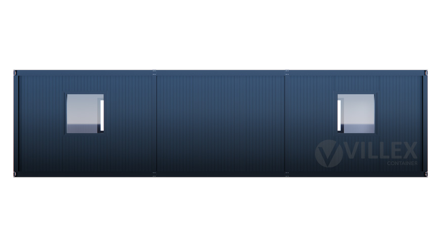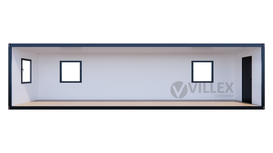 Der Villex Giant Plus Cube Nero 3.0 ist ein großzügig gestalteter Bürocontainer, der moderne Ästhetik mit funktionaler Ausstattung verbindet. Mit einer Länge von 10,0 Metern, einer Breite von 3,0 Metern und einer Höhe von 2,6 Metern bietet dieser Container einen flexiblen Raum für vielfältige Einsatzzwecke. Die Außenverkleidung und der Grundrahmen sind in der eleganten Farbe RAL7016 (Anthrazit) gehalten, was dem Container ein stilvolles und zeitloses Design verleiht. Dank der 5,0 cm starken Dämmung gewährleistet der Container eine hervorragende Wärme- und Schalldämmung, wodurch ein angenehmes Arbeitsklima zu jeder Jahreszeit entsteht. Der Zugang erfolgt über eine robuste, mit Stahlwolle gedämmte Stahltür, die Sicherheit und Effizienz vereint. Für eine helle und einladende Atmosphäre sorgen fünf Standard-Fenster mit den Maßen 1000 x 1000 mm, die viel Tageslicht ins Innere lassen. Die elektrische Ausstattung umfasst einen 32A CEE-Stecker (Rot), drei Doppelsteckdosen, zwei LED-Leuchten sowie einen Lichtschalter, wodurch der Container sofort betriebsbereit ist. Mit einem Gewicht von1900 Kilogramm ist der Giant Plus Cube Nero 3.0 stabil und langlebig gebaut und eignet sich hervorragend für den dauerhaften oder mobilen Einsatz.