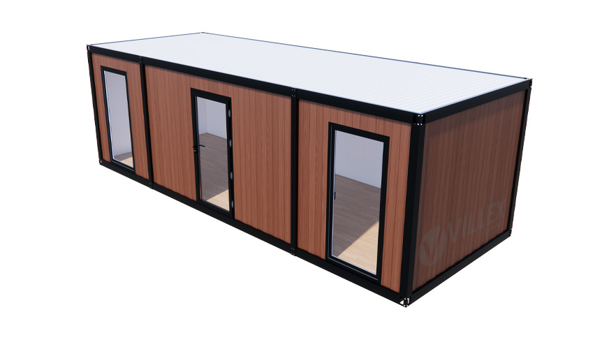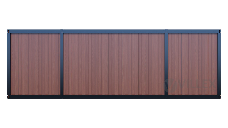 Der Villex Ultra Wood Pavillon 2.0 vereint funktionalen Raum mit ansprechender Holzoptik – ideal für alle, die Wert auf eine moderne und zugleich einladende Gestaltung legen. Mit 8,00 m Länge, 3,00 m Breite und 2,60 m Höhe bietet er rund 24,0 m² Nutzfläche, perfekt geeignet als Büro-, Empfangs- oder Besprechungsraum. Besonders hervorzuheben sind die Paneele in ansprechender Wood-Optik, kombiniert mit einem anthrazitfarbenen Grundrahmen (RAL 7016). Diese Material- und Farbwahl verleiht dem Container eine hochwertige, warme Ausstrahlung, die sich sowohl in urbanem als auch natürlichem Umfeld harmonisch einfügt. Die zwei bodentiefen Fenster (je 1000 x 2000 mm) sorgen für großzügigen Tageslichteinfall und schaffen ein offenes, helles Raumgefühl. Eine moderne verglaste Eingangstür rundet das Erscheinungsbild ab und ermöglicht einen einladenden Zugang. Mit einer 5,0 cm starken Dämmung eignet sich der Container für saisonale Einsätze oder kurz- bis mittelfristige Nutzungen. Die vollständige elektrische Ausstattung umfasst einen 32 A CEE-Starkstromanschluss, drei Doppelsteckdosen, zwei LED-Leuchten und einen Lichtschalter – für einen sofortigen und reibungslosen Betrieb. Mit einem Gewicht von nur 1.700 kg ist der Pavillon besonders leicht und dadurch einfach zu transportieren und flexibel einsetzbar – ideal für Veranstaltungen, Märkte, Baustellen oder als temporäre Büroeinheit auf Firmengeländen.