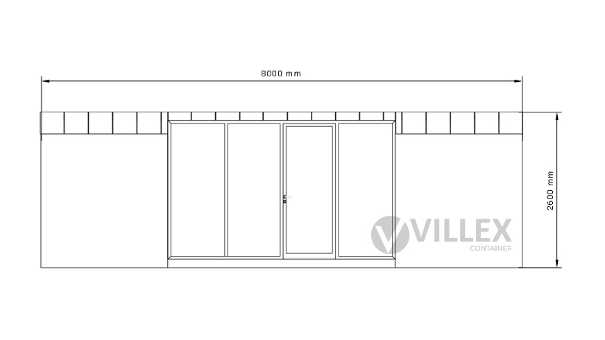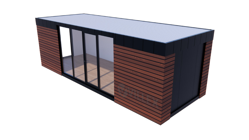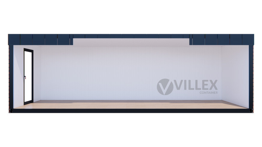 Der Villex Ultra Wood Pavillon 2.0 der Villex Container GmbH ist ein hochwertiger Bürocontainer mit einer Länge von 8,0 m, einer Breite von 3,0 m und einer Höhe von 2,6 m. Die 5 cm starke Dämmung sorgt für eine effektive Isolierung und schafft ein angenehmes Raumklima. Durch die anthrazitfarbenen Paneele (RAL7016) und den farblich abgestimmten Grundrahmen erhält der Container ein modernes und zugleich edles Erscheinungsbild. Zur Ausstattung gehören eine Glastür sowie drei zusätzliche Glaselemente, die gemeinsam mit einem bodentiefen Fenster (1000 x 2000 mm) für großzügigen Lichteinfall und eine offene Atmosphäre sorgen. Die integrierte Elektrik umfasst einen 32A CEE-Stecker, drei Doppelsteckdosen, zwei LED-Leuchten sowie einen Lichtschalter, wodurch eine komfortable Nutzung im Büroalltag gewährleistet wird. Mit einem Gewicht von 1700 kg ist der Villex Ultra Wood Pavillon 2.0 stabil und robust, gleichzeitig aber flexibel einsetzbar. Er vereint Funktionalität mit ansprechendem Design und eignet sich ideal als stilvoller Bürocontainer für vielseitige Anwendungen.