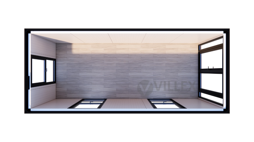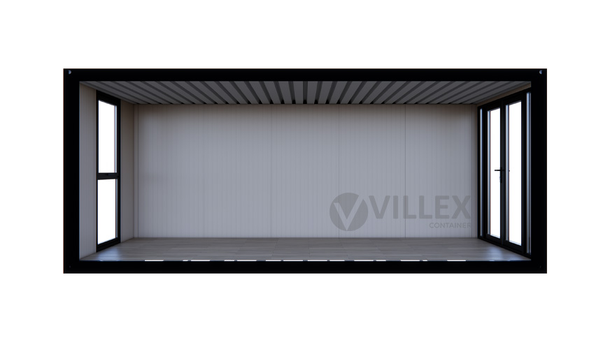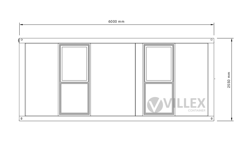 Der Villex X-Series Black 1.0 ist ein hochwertiger 6,0-Meter-Bürocontainer, der modernes Design mit durchdachter Funktionalität kombiniert. Mit 6,00 m Länge, 2,50 m Breite und 2,55 m Höhe bietet er rund 15 m² Nutzfläche – optimal geeignet für den Einsatz als Büro, Besprechungsraum oder temporärer Arbeitsplatz. Ein besonderes Merkmal dieses Modells sind die drei bodentiefen Fenster (je 2000 x 1000 mm) mit integrierten Fliegengittern. Die obere Fensterhälfte lässt sich nach außen öffnen und sorgt damit für gute Belüftung, angenehme Lichtverhältnisse und eine offene Raumwirkung – ideal für eine helle und freundliche Arbeitsatmosphäre. Die 75 mm starke Dämmung aus Sandwichpaneelen gewährleistet eine zuverlässige Isolierung – sowohl bei hohen als auch bei niedrigen Außentemperaturen. Außen überzeugt der Container durch seine moderne Farbgestaltung: Paneele in RAL 7016 (Anthrazit) kombiniert mit einem Grundrahmen in RAL 9005 (Schwarz) für ein klares, professionelles Erscheinungsbild. Zur Ausstattung gehört eine stabile Stahltür (RAL 9005) sowie eine vollständige elektrische Einrichtung mit 5 Steckdosen, 2 LED-Leuchten, einem Lichtschalter und einem 32 A CEE-Starkstromanschluss – alles vorbereitet für den sofortigen Betrieb. Mit einem Gewicht von 1.500 kg ist der Container trotz seiner soliden Bauweise gut transportierbar und vielseitig einsetzbar – ganz gleich, ob auf Baustellen, Betriebsgeländen oder als Erweiterung bestehender Büroflächen.