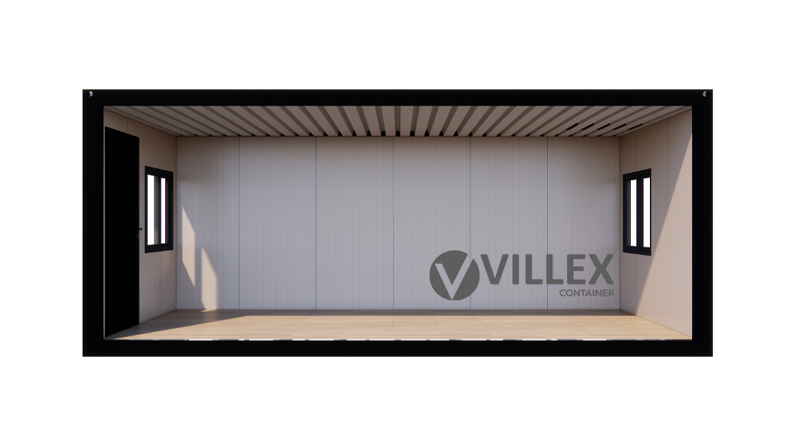 Der Villex X-Series Black Short 1.0 aus dem Hause Villex Container GmbH ist ein hochwertiger 6,0-Meter-Bürocontainer, der durch seine durchdachte Ausstattung und sein modernes Design überzeugt. Mit einer Länge von 6,00 m, einer Breite von 2,50 m und einer Höhe von 2,55 m bietet er eine vielseitig nutzbare Fläche von rund 15 m² – perfekt geeignet als mobiles Büro, Besprechungsraum oder temporäre Arbeitsstation. Die robuste Bauweise mit 75 mm starken Sandwichpaneelen sorgt für eine hervorragende Wärmedämmung und macht den Container ganzjährig einsatzbereit – selbst bei extremen Witterungsbedingungen. Die edle Kombination aus anthrazitfarbenen Paneelen (RAL 7016) und dem tiefschwarzen Grundrahmen (RAL 9005) verleiht dem Container ein elegantes, markantes Erscheinungsbild. Für Licht und Luft sorgen zwei große Aluminiumfenster (1000 x 1000 mm) mit integrierten Fliegengittern, die nicht nur Tageslicht hineinlassen, sondern auch effektiven Insektenschutz bieten. Eine stabile Stahltür (RAL 9005) gewährleistet Sicherheit und Langlebigkeit im täglichen Gebrauch. Auch in Sachen Stromversorgung ist der Villex X-Series bestens ausgestattet: Mit einem 32 A CEE-Starkstromanschluss, fünf Steckdosen, zwei LED-Leuchten sowie einem Lichtschalter ist der Container sofort einsatzbereit – sei es für technische Geräte, Arbeitsplatzbeleuchtung oder IT-Infrastruktur. Trotz seiner soliden Konstruktion bringt der Container lediglich 1.500 kg auf die Waage, was ihn flexibel und einfach transportierbar macht.